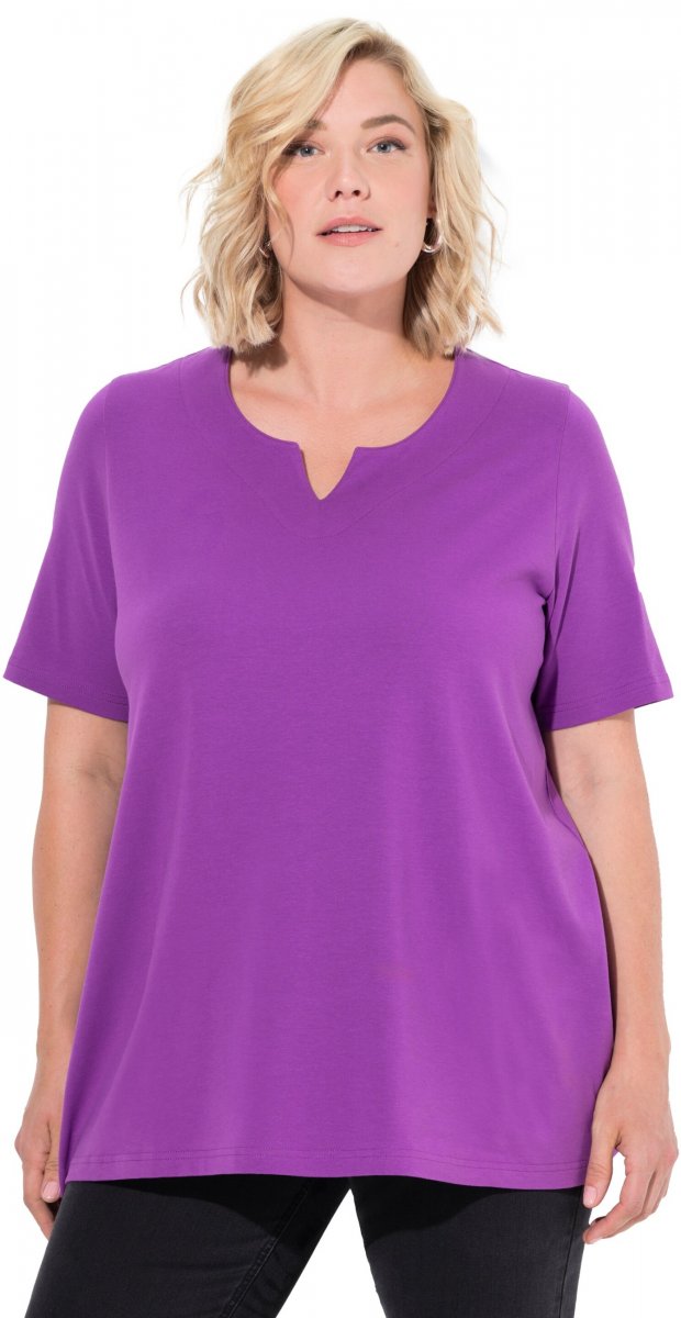 Ulla Popken Essential Notch Neck Stretch Tee Purple