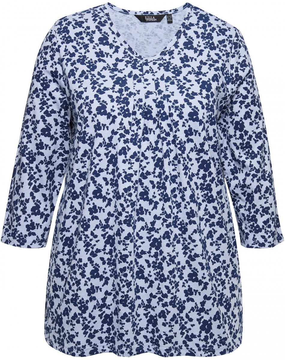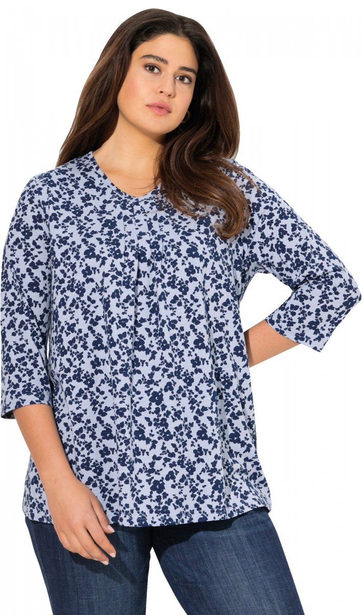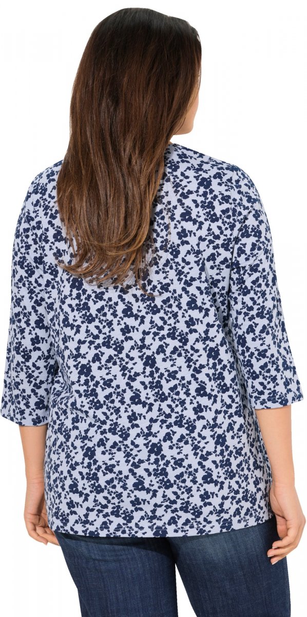 Ulla Popken Floral 3/4 Sleeve V-Neck A-Line Tee Blue