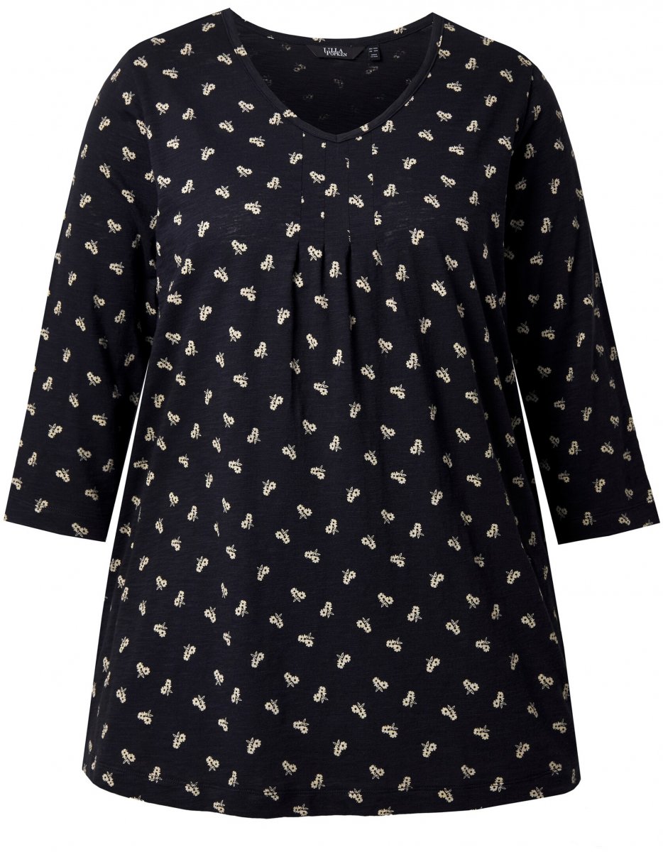 Ulla Popken Flower Print 3/4 Sleeve Tee Black