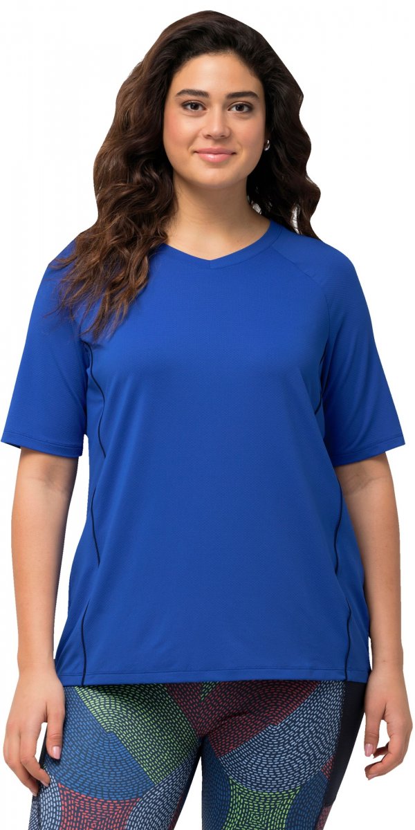 Ulla Popken Piping Accent Functional UVP 50+ Stretch Knit Top Royal Blue