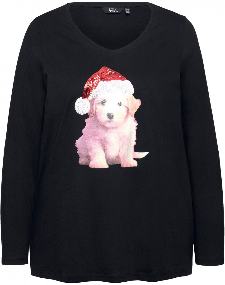 Ulla Popken Puppy Graphic Christmas Long Sleeve T-Shirt Black