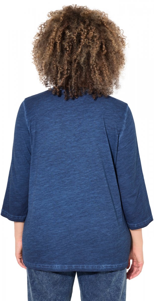 Ulla Popken UNIQUE Embroidered 3/4 Sleeve Tee Ink Blue