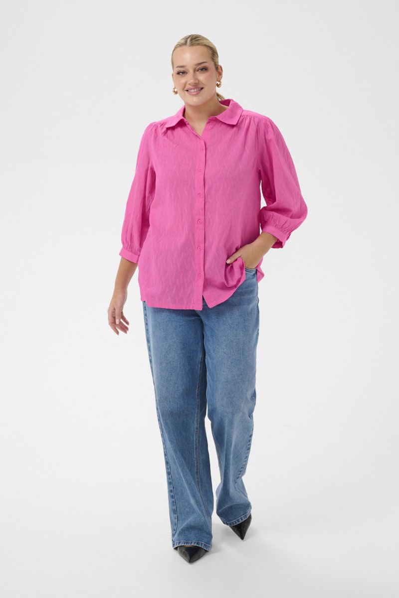Paita lyhennetyillä hihoillaSaatavilla meiltä kokoina 42–54Kaffe Curve-tuotemerkilläMateriaali: 100 % puuvillaVäljä mitoitusVäri: roosaKatso koko-opas klikkaamalla tästä