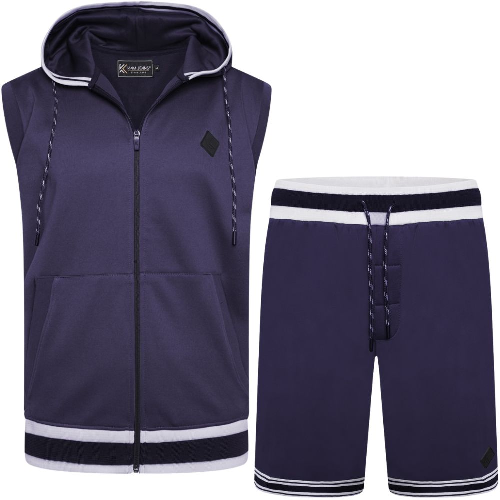 Koko-opas - Kam Jeans TS005 Retro Tracky Set (Shorts/Sleeveless Hoodie) Navy
