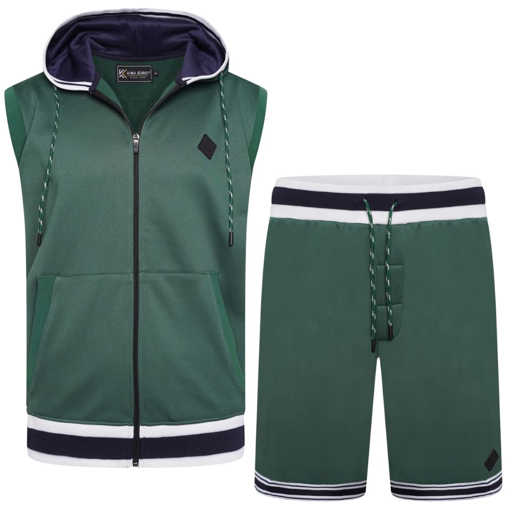 Koko-opas - Kam Jeans TS005 Retro Tracky Set (Shorts/Sleeveless Hoodie) Racing Green